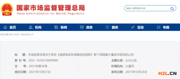 市場(chǎng)監(jiān)管總局關(guān)于發(fā)布《諧波電流互感器檢定規(guī)程》等17項(xiàng)國(guó)家計(jì)量技術(shù)規(guī)范的公告