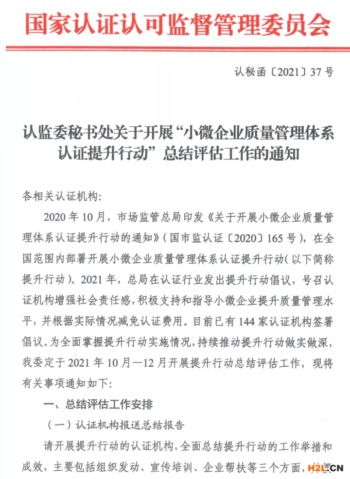 為全面掌握小微企業(yè)質量管理體系認證提升行動實施情況,持續(xù)推動提升行動做實做深,認監(jiān)委定于2021年10至12月開展提升行動總結評估工作,相關材料需加蓋機構公章并于11月10日前以電子郵件進行報送。
