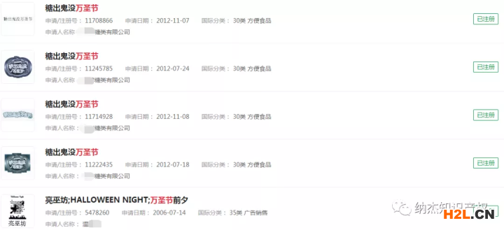 比如下圖中與萬圣節(jié)相關(guān)的商標(biāo),就處于已注冊狀態(tài)。