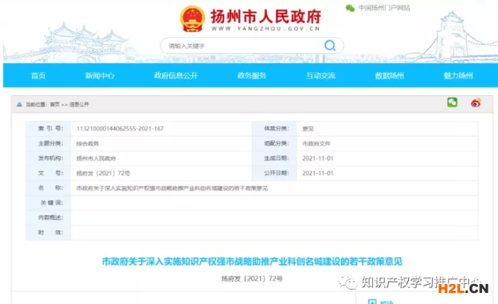 核心提示:近日,揚州印發(fā)《關于深入實施知識產權強市戰(zhàn)略助推產業(yè)科創(chuàng)名城建設的若干政策意見》,圍繞知識產權的創(chuàng)造、保護、運用和服務等知識產權全