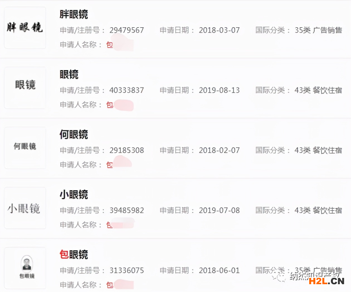 據(jù)了解,原告包某某是“眼鏡”注冊(cè)商標(biāo)的商標(biāo)權(quán)人,該商標(biāo)在2000年5月7日被國(guó)家商標(biāo)局核準(zhǔn)注冊(cè)。核準(zhǔn)使用項(xiàng)目包括餐廳和餐館。其名下還有十多個(gè)包含“眼鏡”二字的商標(biāo),諸如“胖眼鏡”、“何眼鏡”、“小眼鏡”等。