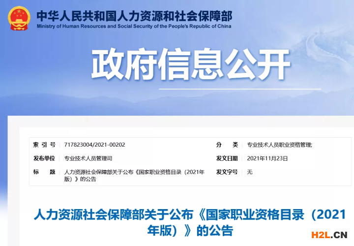 人力資源社會保障部關(guān)于公布《國家職業(yè)資格目錄(2021年版)》的公告