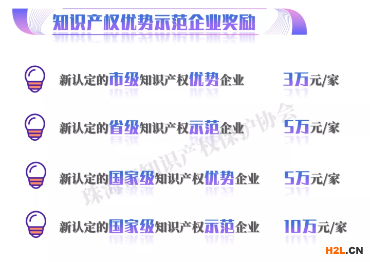 (六)知識(shí)產(chǎn)權(quán)優(yōu)勢(shì)示范企業(yè)獎(jiǎng)勵(lì)。對(duì)經(jīng)市知識(shí)產(chǎn)權(quán)部門新認(rèn)定的市級(jí)知識(shí)產(chǎn)權(quán)優(yōu)勢(shì)企業(yè),給予每家3萬(wàn)元獎(jiǎng)勵(lì);對(duì)經(jīng)省知識(shí)產(chǎn)權(quán)局新認(rèn)定的省級(jí)知識(shí)產(chǎn)權(quán)示范企業(yè),給予每家5萬(wàn)元獎(jiǎng)勵(lì);對(duì)經(jīng)國(guó)家知識(shí)產(chǎn)權(quán)局新認(rèn)定的國(guó)家級(jí)知識(shí)產(chǎn)權(quán)示范、優(yōu)勢(shì)企業(yè),分別給予每家10萬(wàn)元、5萬(wàn)元獎(jiǎng)勵(lì)。