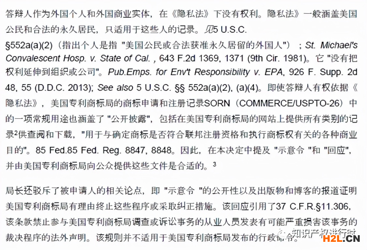 2021年12月10日,美國(guó)商標(biāo)專利局發(fā)布制裁令,制裁令中寫到: