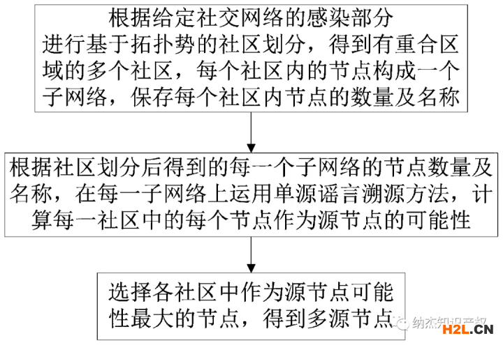 該專利首先進(jìn)行基于拓?fù)鋭?shì)的社區(qū)劃分,得到有重合區(qū)域的多個(gè)社區(qū),每個(gè)社區(qū)內(nèi)的節(jié)點(diǎn)構(gòu)成一個(gè)子網(wǎng)絡(luò),保存每個(gè)社區(qū)內(nèi)節(jié)點(diǎn)的數(shù)量及名稱;然后在每一子網(wǎng)絡(luò)上運(yùn)用單源謠言溯源方法,計(jì)算每一社區(qū)中的每個(gè)節(jié)點(diǎn)作為源節(jié)點(diǎn)的可能性;選擇各社區(qū)中作為源節(jié)點(diǎn)可能性最大的節(jié)點(diǎn),得到多源節(jié)點(diǎn)。實(shí)現(xiàn)了社交網(wǎng)絡(luò)中感染部分多源節(jié)點(diǎn)的尋找,溯源率高,錯(cuò)誤距離小。