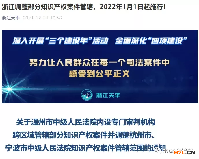 自2022.1.1日起,浙江調(diào)整部分知識產(chǎn)權(quán)案件管轄范圍!