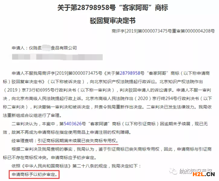 再看最新的駁回復(fù)審決定書(shū),“客家阿哥”商標(biāo)予以初步審定了!