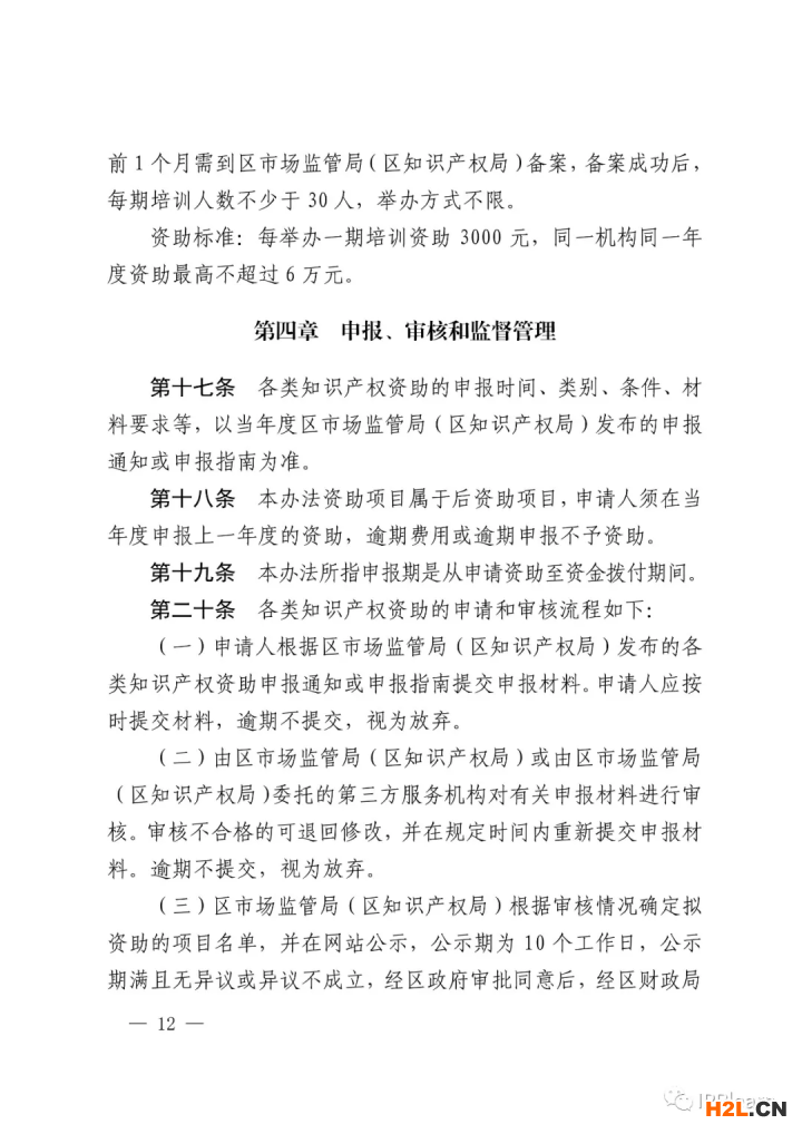 3.第三章擬定資助項(xiàng)目和標(biāo)準(zhǔn),從第九條至第十六條,主要內(nèi)容包括知識(shí)產(chǎn)權(quán)高質(zhì)量發(fā)展項(xiàng)目配套資助等八類資助項(xiàng)目及標(biāo)準(zhǔn)。