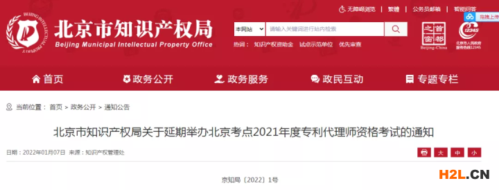 北京市知識產(chǎn)權(quán)局關(guān)于延期舉辦北京考點2021年度專利代理師資格考試的通知