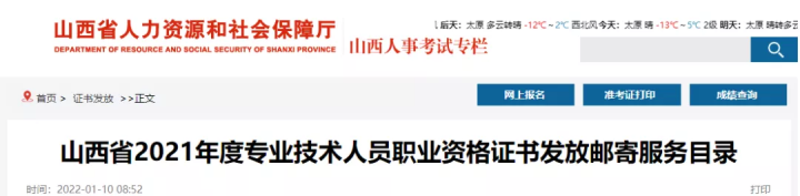 山西省人社廳發(fā)布:山西省2021年度專業(yè)技術(shù)人員職業(yè)資格證書發(fā)放郵寄服務(wù)目錄;其中提到:山西2021年初中級(jí)知識(shí)產(chǎn)權(quán)師郵寄證書1月12日始!
