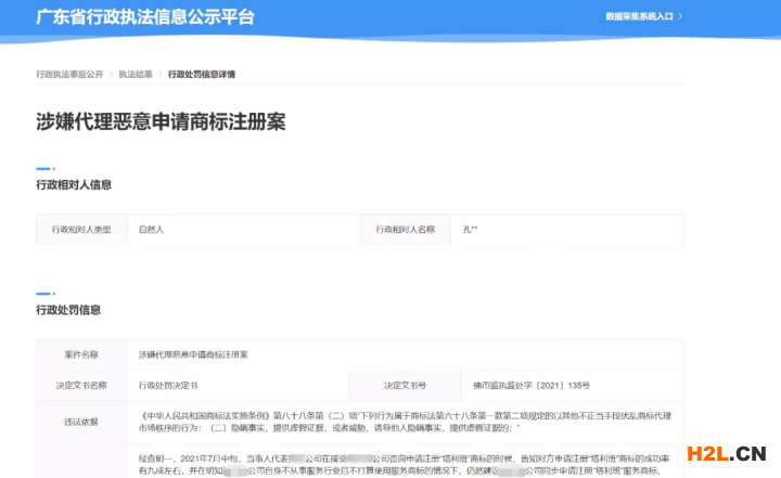 核心提示:近日,廣東省行政執(zhí)法信息公示平臺(tái)公布發(fā)布一則行政處罰決定書(shū)。XX公司在接受XXX公司咨詢申請(qǐng)注冊(cè)塔利班商標(biāo)的時(shí)候,告知對(duì)方申請(qǐng)注冊(cè)塔利