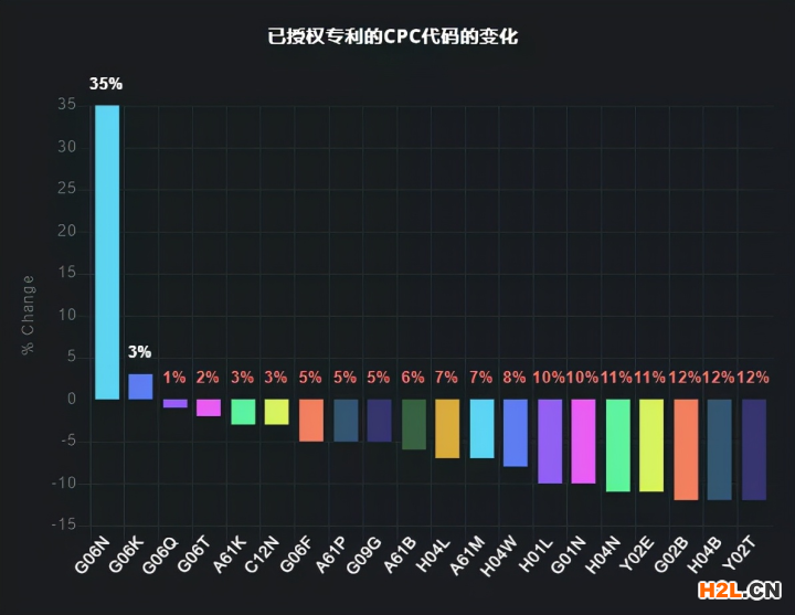 美國(guó)專(zhuān)利商標(biāo)局(USPTO)使用CPC分類(lèi)號(hào)對(duì)專(zhuān)利進(jìn)行技術(shù)分類(lèi),以下是美國(guó)授權(quán)專(zhuān)利同比增長(zhǎng)率最高的兩個(gè)CPC代碼的定義(2020-2021年):