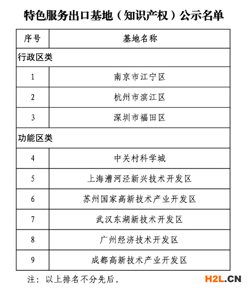根據(jù)《商務部等7部門辦公廳(室)關于組織申報專業(yè)類特色服務出口基地的通知》(商辦服貿(mào)函〔2021〕355號)要求,商務部、中央宣傳部、教育部、自然資源部、人力資源社會保障部、知識產(chǎn)權局、中國外文局等7部門共同開展了人力資源服務、地理信息服務、知識產(chǎn)權服務和語言服務等4個領域的特色服務出口基地評審認定工作。經(jīng)地方申報、省市知識產(chǎn)權和商務主管部門初審推薦、第三方機構客觀指標評審、專家評審、部門工作組復核等程序,初步認定知識產(chǎn)權服務出口基地9家。目前,名單已經(jīng)公示,公示時間為2月7日至2月11日。