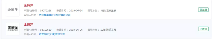 2月8日,花樣滑冰男單短節(jié)目開(kāi)賽,中國(guó)花滑選手金博洋再度演繹《臥虎藏龍》獲得90.98分,而“金博洋”商標(biāo)已于2019年被申請(qǐng)注冊(cè),2020年注冊(cè)成功。此外,多家公司曾搶注金博洋商標(biāo),當(dāng)前狀態(tài)多為“商標(biāo)無(wú)效”、“注冊(cè)申請(qǐng)中”。