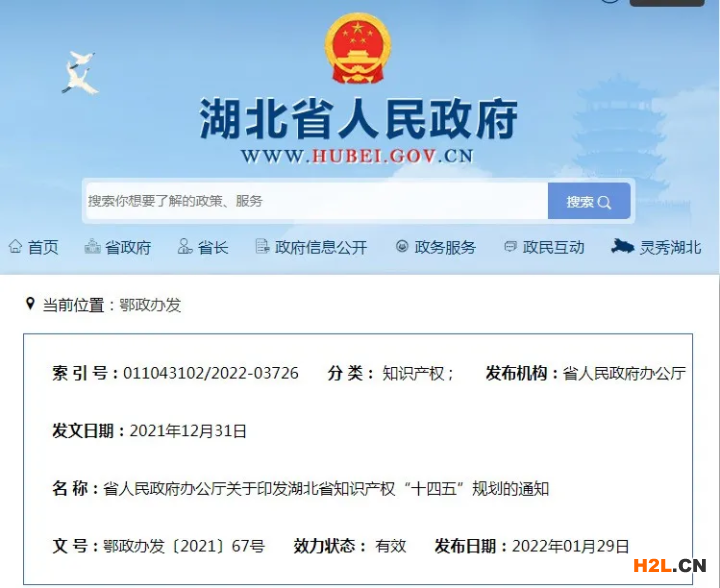 省人民政府辦公廳關(guān)于印發(fā)湖北省知識(shí)產(chǎn)權(quán)“十四五”規(guī)劃的通知