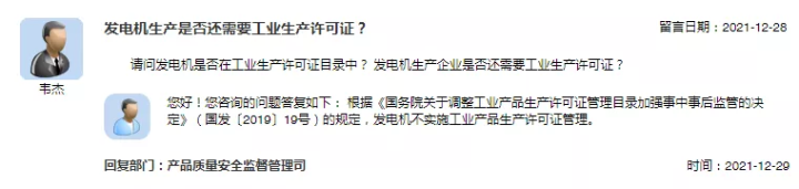 發(fā)電機生產是否還需要工業(yè)生產許可證?: