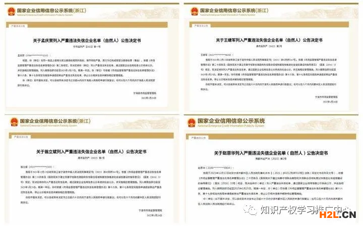 2月17日消息,記者從浙江省市場監(jiān)管局了解到,近日,4名自然人因假冒注冊商標(biāo)罪、侵犯商業(yè)秘密罪被寧波市市場監(jiān)管部門列入嚴(yán)重違法失信名單,并通過全國企業(yè)信用信息公示系統(tǒng)進行公示。