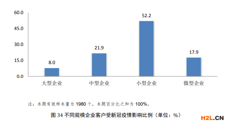 另外,新冠疫情的不斷反復也是知識產權服務機構面臨的一大挑戰(zhàn),其影響主要體現(xiàn)在對中小型企業(yè)開展的業(yè)務上。調查顯示,52.2%的知識產權服務機構認為疫情對小型企業(yè)客戶影響最大,21.9%認為對中型企業(yè)影響最大,17.9%認為對微型企業(yè)的影響最大。盡管可通過網(wǎng)絡辦理部分知識產權服務,但網(wǎng)絡溝通仍不及現(xiàn)場服務的便捷性。