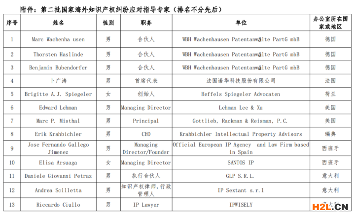 關(guān)于第二批國(guó)家海外知識(shí)產(chǎn)權(quán)糾紛應(yīng)對(duì)指導(dǎo)專家名單的公示