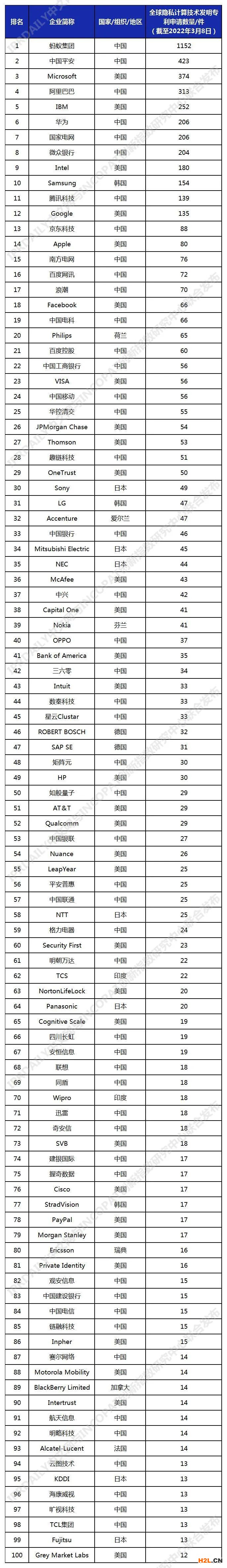 全球隱私計算技術(shù)發(fā)明專利排行榜(TOP100)