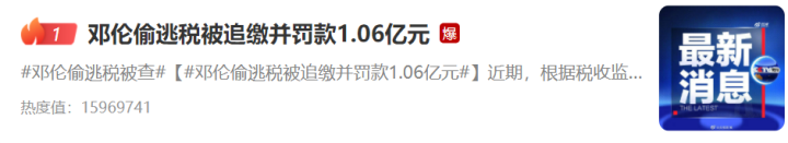 4點(diǎn)前后,#鄧倫偷逃稅被追繳并罰款1.06億元#就迅速搶占了熱搜第一。