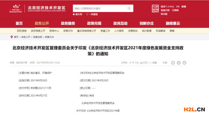 2021年9月30日,北京經(jīng)濟(jì)技術(shù)開發(fā)區(qū)管理委員會(huì)下發(fā)文件《北京經(jīng)濟(jì)技術(shù)開發(fā)區(qū)2021年度綠色發(fā)展資金支持政策(征求意見稿)》文件指出:對2021年獲得碳中和認(rèn)證的規(guī)模以上工業(yè)企業(yè)或獲得碳中和認(rèn)證的已納入城市更新的園區(qū)一次性50萬元獎(jiǎng)勵(lì)。(重點(diǎn)排放部分可部分廠房園區(qū)碳中和認(rèn)證,其他單位需全部)。