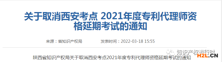 ?陜西省知識產(chǎn)權(quán)局關(guān)于取消西安考點(diǎn)2021年度專利代理師資格延期考試的通知