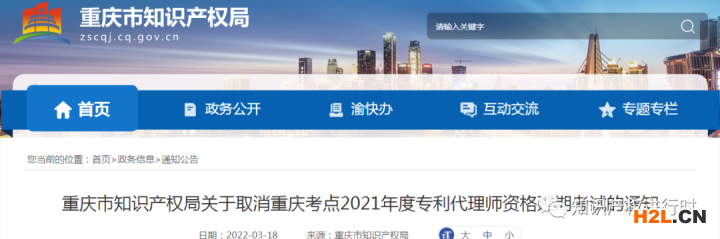 ?重慶市知識產(chǎn)權(quán)局關(guān)于取消重慶考點(diǎn)2021年度專利代理師資格延期考試的通知