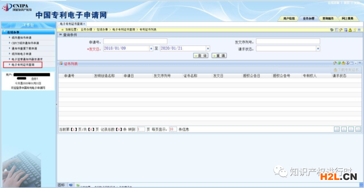 申請(qǐng)人在該模塊可以查詢、預(yù)覽、下載當(dāng)前電子申請(qǐng)注冊(cè)用戶名下的電子專 利證書(shū)。