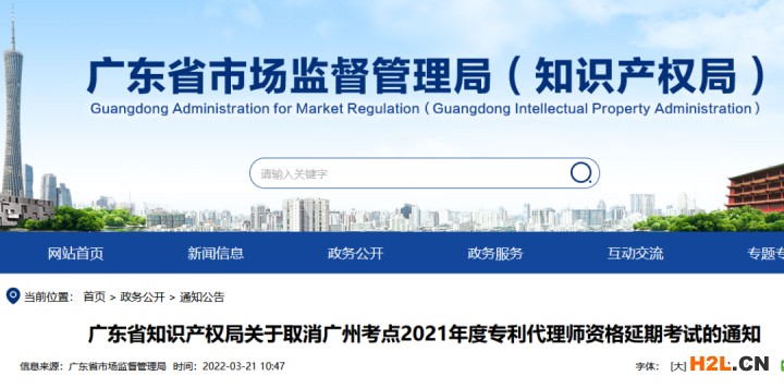 廣東省知識產(chǎn)權局關于取消廣州考點2021年度專利代理師資格延期考試的通知