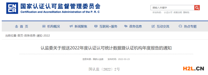 認(rèn)監(jiān)委關(guān)于報送2022年度認(rèn)證認(rèn)可統(tǒng)計數(shù)據(jù)暨認(rèn)證機構(gòu)年度報告的通知