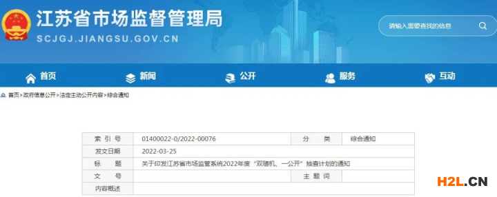 關(guān)于印發(fā)江蘇省市場監(jiān)管系統(tǒng)2022年度“雙隨機(jī)、一公開”抽查計(jì)劃的通知