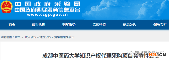 近日,中國政府采購網(wǎng)發(fā)布成都中醫(yī)藥大學知識產(chǎn)權(quán)代理采購項目競爭性磋商