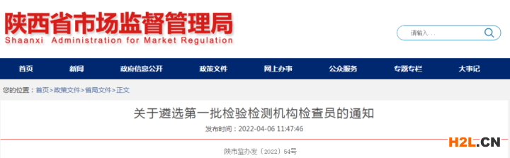 陜西省市場監(jiān)督管理局辦公室關(guān)于遴選第一批檢驗(yàn)檢測機(jī)構(gòu)檢查員的通知