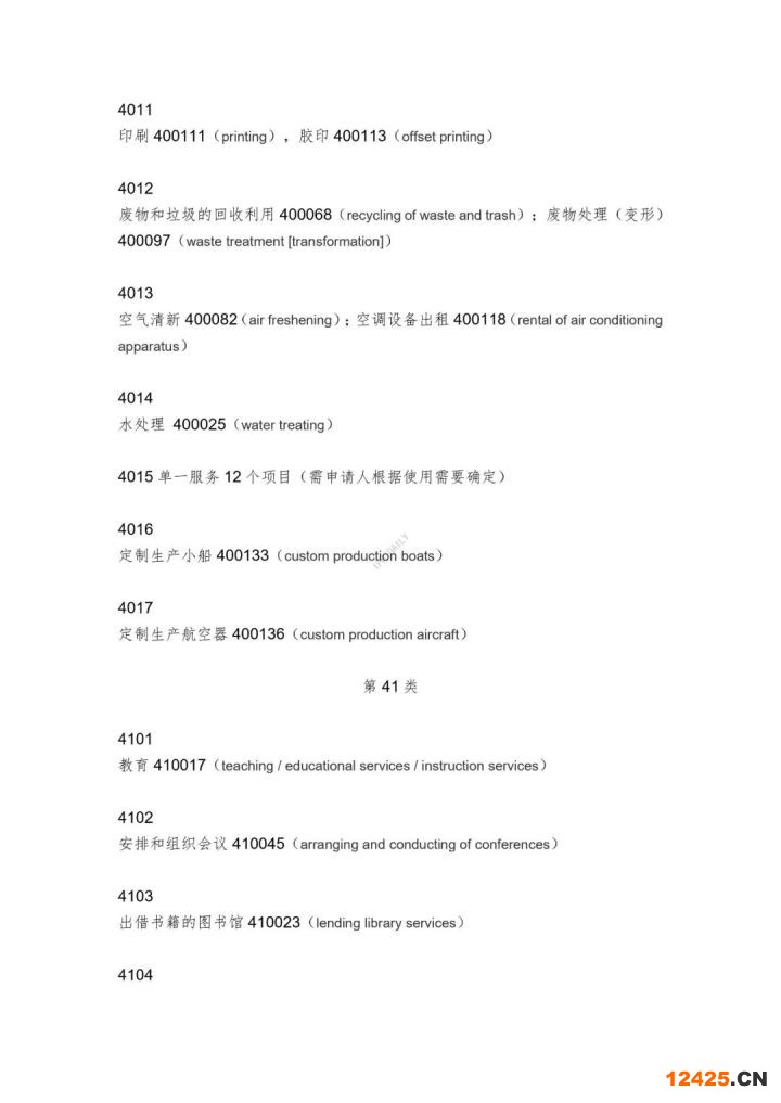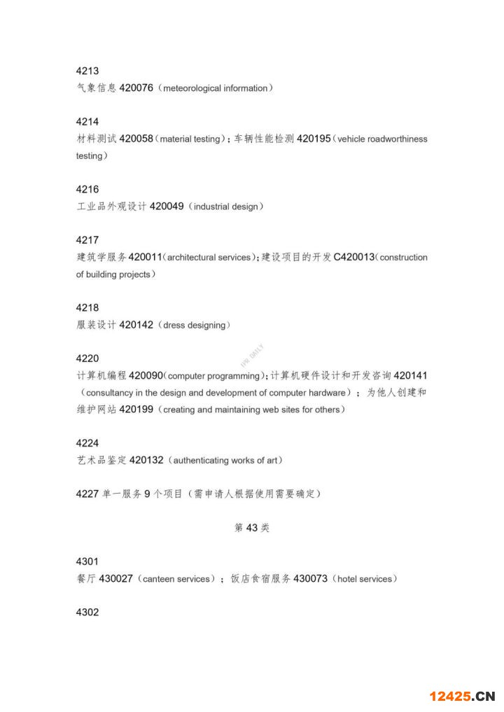 附:《類似商品和服務區(qū)分表》的重點項目及其英文翻譯