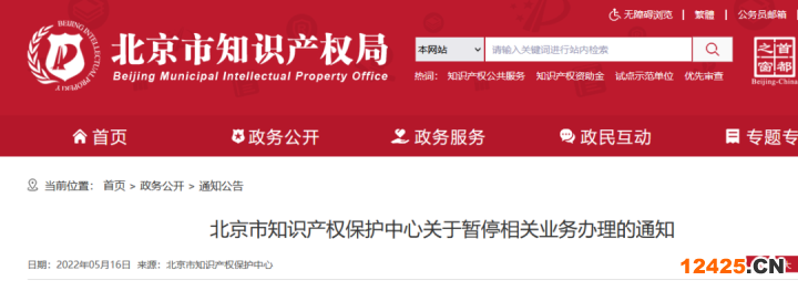 北京市知識產(chǎn)權保護中心關于暫停相關業(yè)務辦理的通知