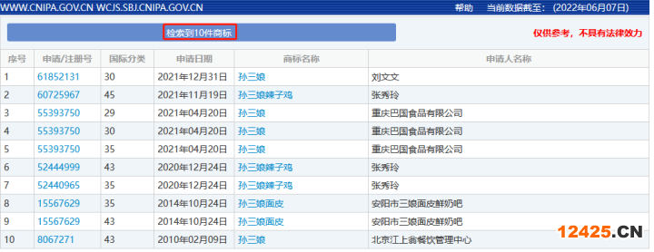劇中人物孫三娘,也難逃被搶注商標(biāo)的命運(yùn)。早在2010年2月9日,北京江上翁餐飲管理中心就申請(qǐng)了43類商標(biāo),目前商標(biāo)狀態(tài)為無(wú)效。
