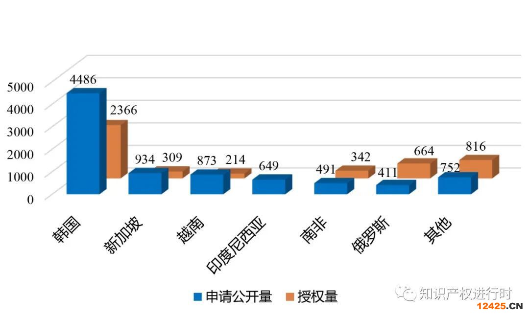2021年,我國企業(yè)在沿線國家專利申請公開量中,在RCEP成員國的申請有7318件,所占比重達(dá)到85.1%,同比增長23.0%。其中,排名前四位的國家均為RCEP成員國,依次是韓國(4486件)、新加坡(934件)、越南(873件)和印度尼西亞(649件)。我國企業(yè)在沿線國家的專利授權(quán)量中,在RCEP成員國授權(quán)的有3158件,占67.0%,同比增長24.8%。隨著《區(qū)域全面經(jīng)濟(jì)伙伴關(guān)系協(xié)定》(RCEP)的生效實(shí)施,全球最大自由貿(mào)易區(qū)正式落地,區(qū)域貿(mào)易投資更加自由便利,RCEP成員國成為我國加深與“一帶一路”沿線國家知識產(chǎn)權(quán)合作的重要著力點(diǎn)。