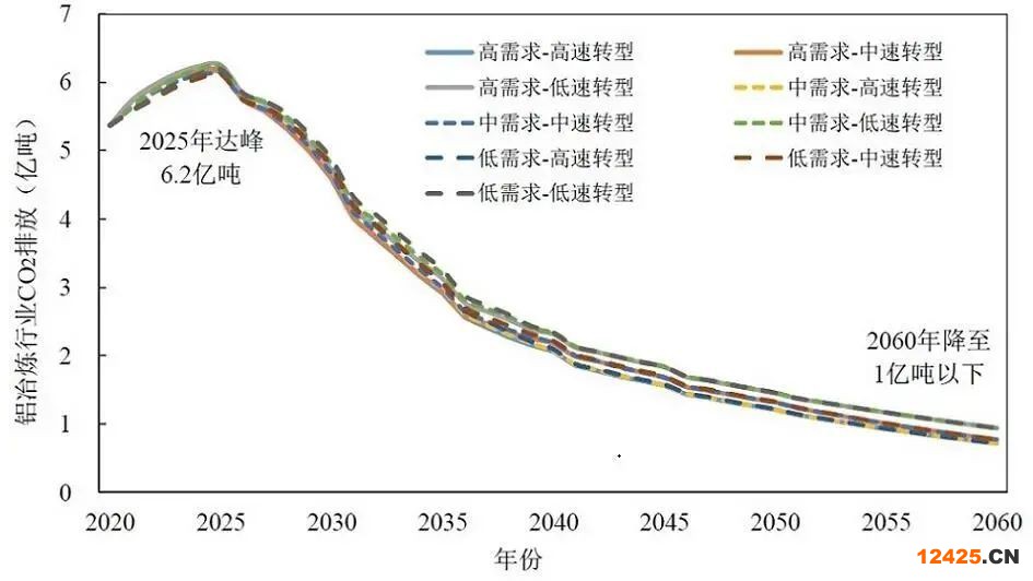圖9 鋁冶煉行業(yè)未來(lái)CO2排放路徑(2020—2060年)