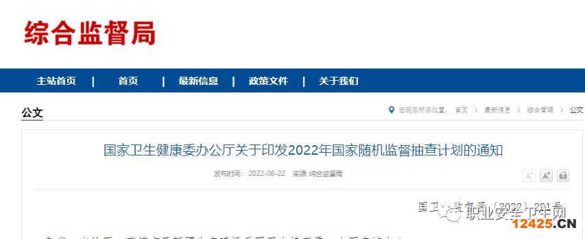 2022年職業(yè)衛(wèi)生國(guó)家隨機(jī)監(jiān)督抽查計(jì)劃