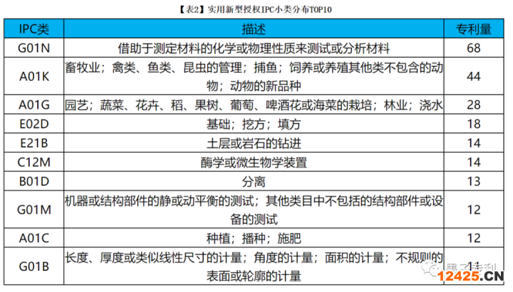 2022年5月科研院所發(fā)明授權(quán)專利IPC大類分布,如【圖3】所示,主要集中在C(化學(xué);冶金)、G(物理)等;實(shí)用新型IPC大類分布,如【圖4】所示,主要集中在G(物理)、A(農(nóng)林日用)、B(作業(yè);運(yùn)輸);發(fā)明、實(shí)用新型授權(quán)專利IPC小類如【表1】、【表2】所示。