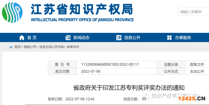 《江蘇專利獎(jiǎng)評(píng)獎(jiǎng)辦法》政策解讀