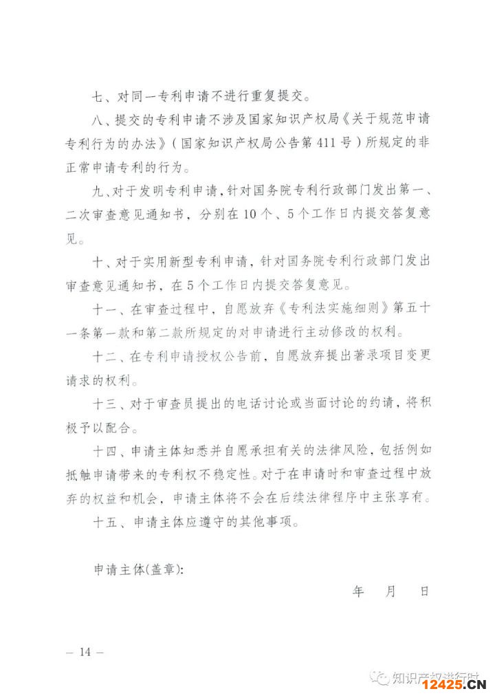 第二十四條 代理機(jī)構(gòu)存在以下情形之一,暫停預(yù)審案件代理服務(wù)七到十二個(gè)月:(一)提交虛假材料或協(xié)助備案主體偽造材料;(二)針對同一主題批量編造預(yù)審申請案件;(三)為并無實(shí)體研發(fā)、生產(chǎn)或經(jīng)營行為,僅作為專利申請載體的備案主體進(jìn)行備案或提交預(yù)審申請案件提供便利;(四)其他不良情形。