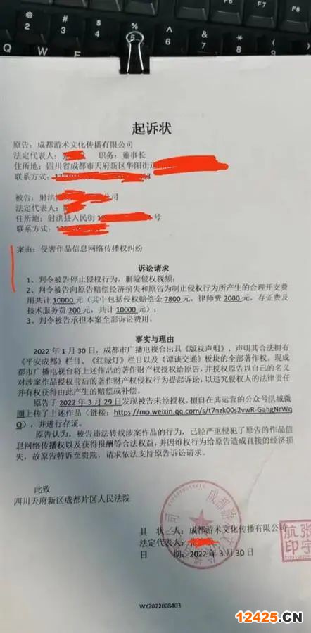 “因?yàn)椤蹲T談交通》是一檔公益性的普法節(jié)目,我于2015年在公司的微信公號(hào)轉(zhuǎn)發(fā)過一次該節(jié)目的視頻,沒有做任何二次剪輯,此前也沒有任何人通知我要下架視頻。結(jié)果今年,我們突然被游術(shù)公司起訴侵權(quán)了,我是在6月份收到的法院傳票,原定于7月初開庭。”陳先生告訴極目新聞?dòng)浾撸驗(yàn)樾枰獜目h城去成都應(yīng)訴,請(qǐng)律師、交通等也要花費(fèi)不少錢,他感覺比較麻煩,就和對(duì)方和解了,最后賠償了5000元。