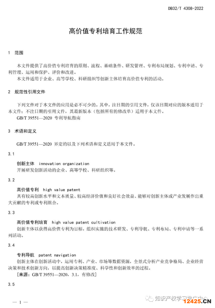 近日,江蘇省市場監(jiān)管局批準(zhǔn)發(fā)布《高價值專利培育工作規(guī)范》地方標(biāo)準(zhǔn)(DB32/T 4308-2022),該標(biāo)準(zhǔn)由江蘇省知識產(chǎn)權(quán)局牽頭制定,是江蘇多年來高價值專利培育工作經(jīng)驗的總結(jié)和凝煉,對企業(yè)、高校、科研組織等創(chuàng)新主體開展高價值專利培育工作具有較強的指導(dǎo)作用。