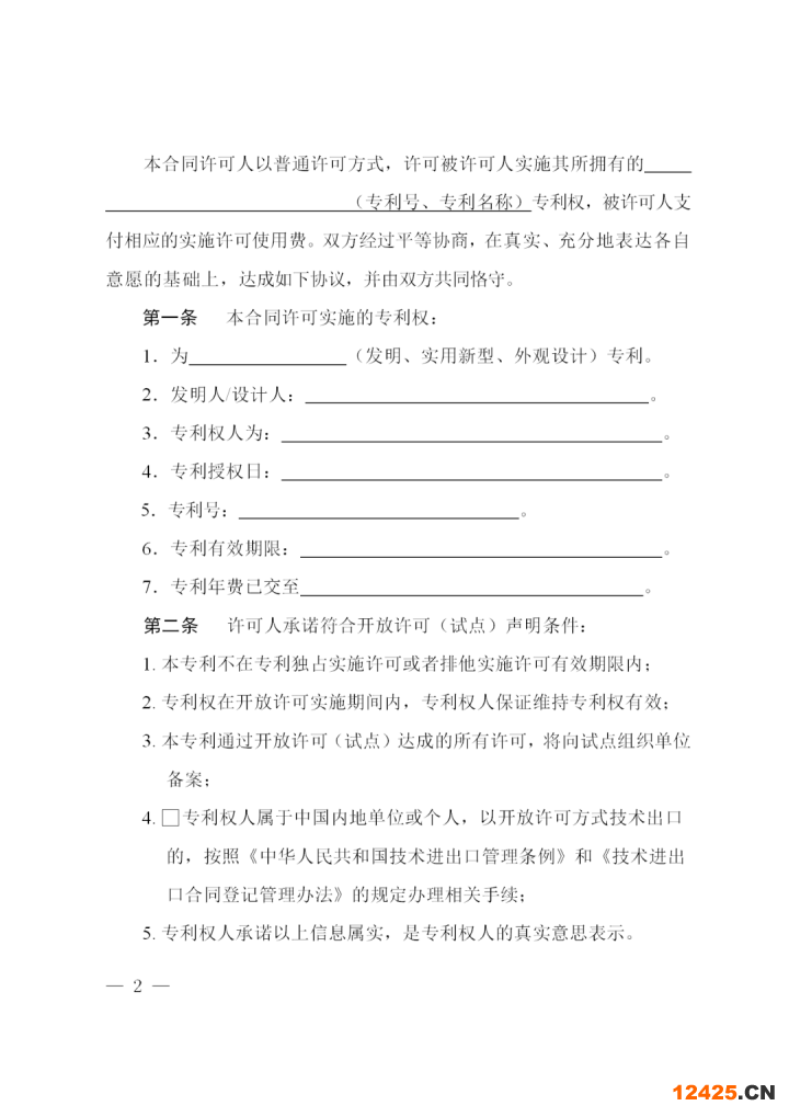 3.專利開放許可(試點(diǎn))合同參考樣例