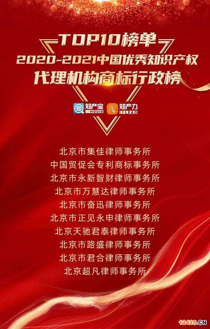 2020-2021中國優(yōu)秀知識產(chǎn)權(quán)代理機構(gòu)商標(biāo)行政榜TOP 10