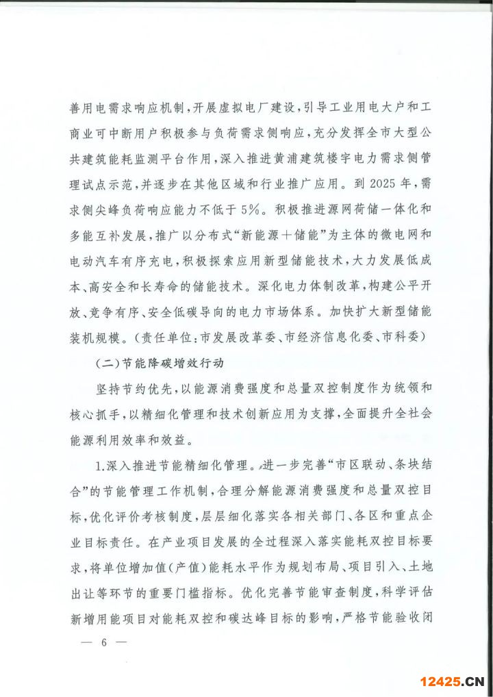 合"的節(jié)能管理工作機制,合理分解能源消費強度和總量雙控目標(biāo),優(yōu)化評價考核制度,層層細化落實各相關(guān)部門、各區(qū)和重點企業(yè)目標(biāo)責(zé)任。在產(chǎn)業(yè)項目發(fā)展的全過程深入落實能耗雙控目標(biāo)要求,將單位增加值(產(chǎn)值)能耗水平作為規(guī)劃布局、項目引入、土地出讓等環(huán)節(jié)的重要門檻指標(biāo)。優(yōu)化完善節(jié)能審查制度,科學(xué)評估新增用能項目對能耗雙控和碳達峰目標(biāo)的影響,嚴格節(jié)能驗收閉環(huán)管理。強化用能單位精細化節(jié)能管理,建成覆蓋全市所有重點用能單位和大型公共建筑的能耗在線監(jiān)測平臺,推進建立本市建筑碳排放智慧監(jiān)管平臺,推動高耗能企業(yè)建立能源管理中心。完善能源計量體系,鼓勵采用認證手段提升節(jié)能管理水平。強化能源利用狀況報告及能源審計管理制度,通過目標(biāo)考核、能效對標(biāo)、限額管理、綠色電價、信用監(jiān)管等激勵約束機制,引導(dǎo)督促用能單位提升節(jié)能管理水平、深挖節(jié)能潛力。加強節(jié)能監(jiān)察能力建設(shè),強化節(jié)能監(jiān)察執(zhí)法。(責(zé)任單位:市發(fā)展改革委、市經(jīng)濟信息化委、市規(guī)劃資源局、市住房城鄉(xiāng)建設(shè)管理委、市交通委、市市場監(jiān)管局、市機管局)