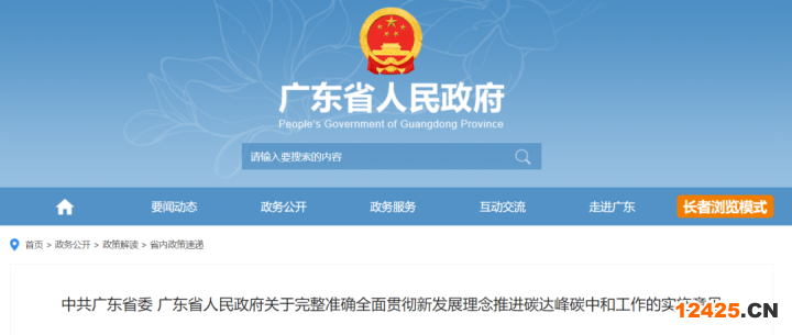 中共廣東省委 廣東省人民政府關(guān)于完整準確全面貫徹新發(fā)展理念推進碳達峰碳中和工作的實施意見