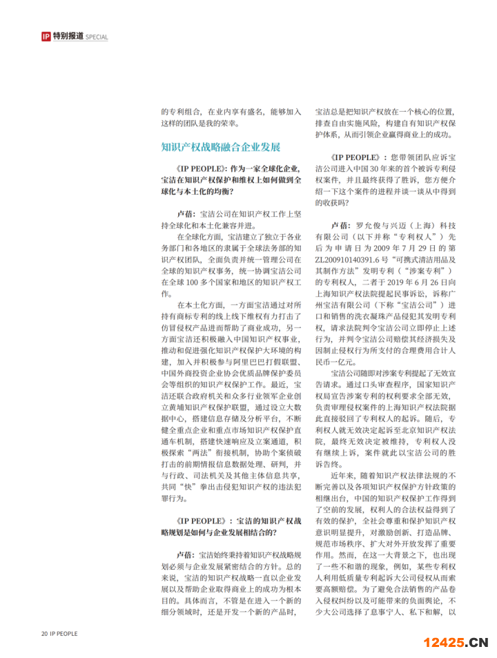 《IP PEOPLE》:作為一家全球化企業(yè),寶潔在知識產(chǎn)權(quán)保護(hù)和維權(quán)上如何做到全球化與本土化的均衡?